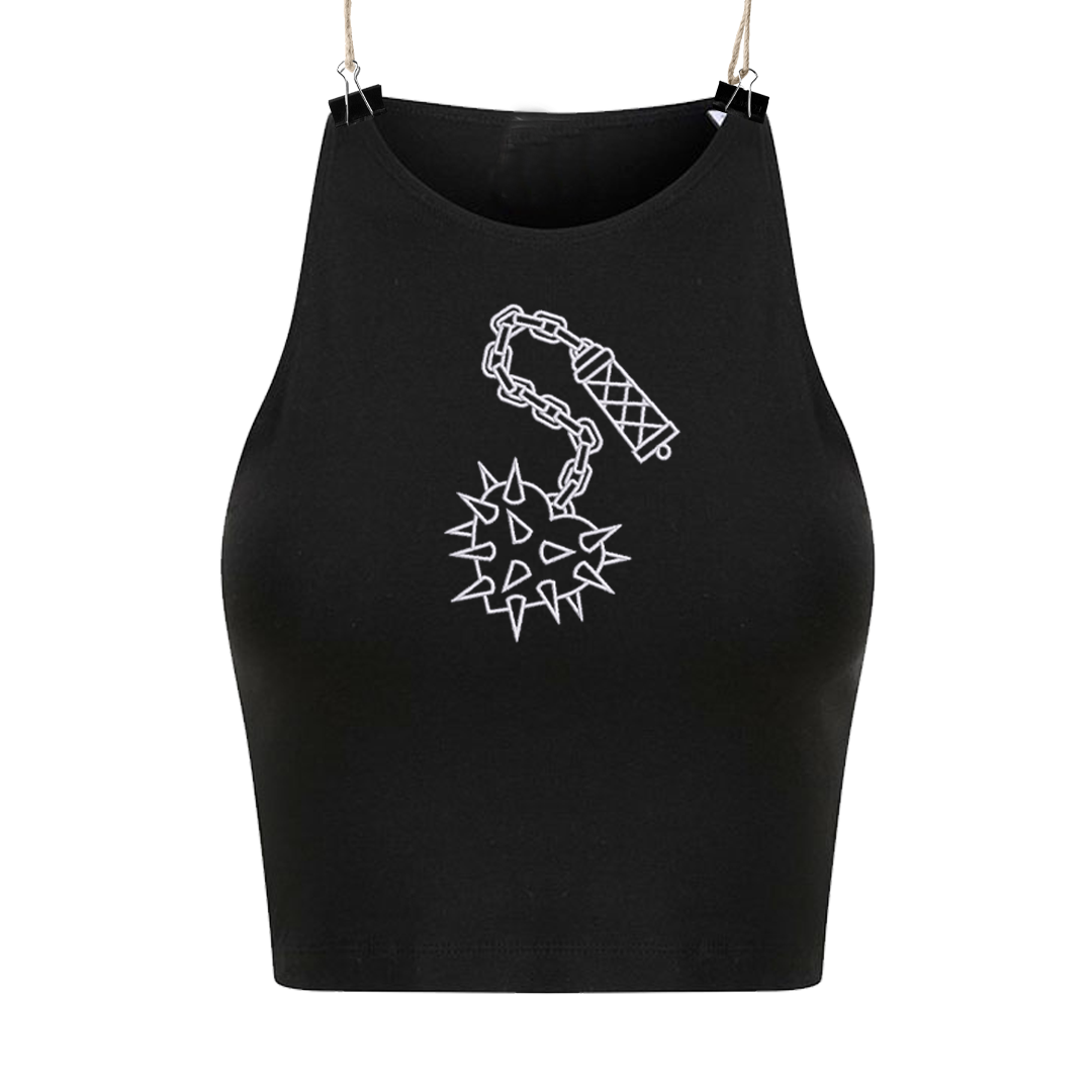 These cropped tanks tops have a racer style front and back and combine black polyester and elastane single jersey to create a durable and comfortable garment.