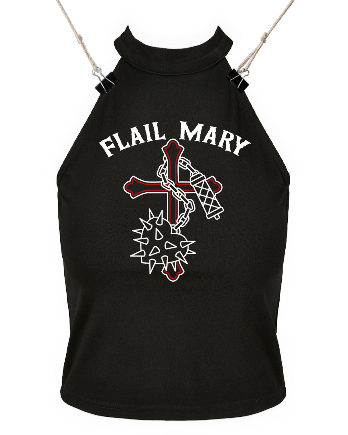 Racer back, high neck vest top in a cotton stretch fabric finished with a front print.
